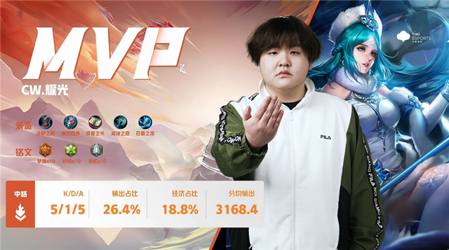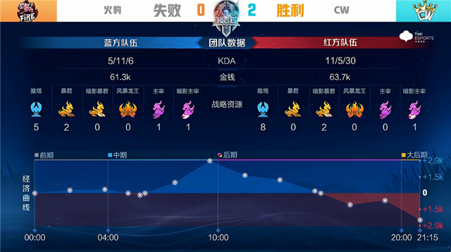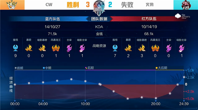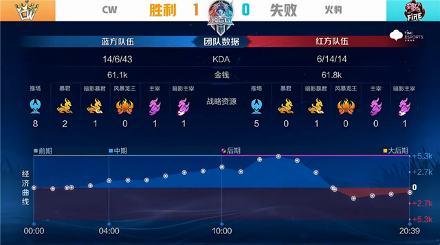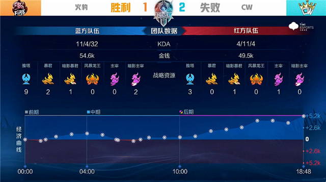 开局火豹反蓝。1分36秒CW上路击杀关羽。2分58秒火豹拿下暴君。3分58秒火豹下路击杀马可波罗。5分11秒CW上路击杀东皇太一。5分34秒CW上路击杀鲁班七号。5分53秒CW上路击杀嬴政。6分07秒CW野区击杀橘右京。6分35秒CW拿下主宰。8分56秒CW中路开团1换2.10分20秒CW拿下暗影主宰。10分34秒CW中路开团1换1.11分23秒火豹野区开团2换3.12分01秒火豹野区击杀太乙真人。12分26秒火豹拿下暗影暴君。14分42秒CW拿下暗影主宰。16分41秒火豹中路开团2换3.18分28秒火豹中路开团0换3.18分57秒火豹中路团灭CW推掉水晶拿下胜利。